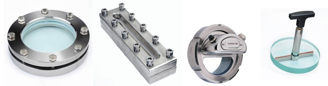 Sight glasses, also called sight windows or view ports, comprise two flanges, bolted together, surrounding a glass disc sealed with gaskets and provides a means of viewing the inside of a process vessel or tank. They are typically used to visually verify stages of a process, inspect process media, and to observe liquid levels.