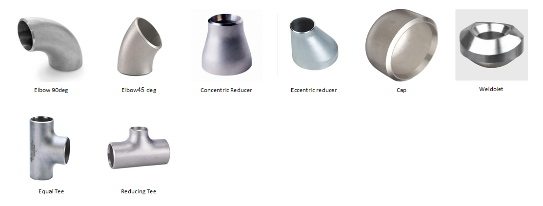 Butt weld fittings are available as elbows, tees, caps, reduces and out lets (olets). These fittings are the most common type of welded pipe fitting and are specified by nominal pipe size and pipe schedule. Buttweld fittings use seamless or welded pipe as the starting material and are formed (through multiple processes. Just as the pipe is sold from Schedule 10 to Schedule. 160